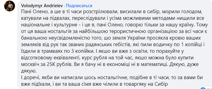 Высокопоставленная чиновница Киевской городской горадминистрации (то есть подчиненная мэра Виталия Кличко) написала пост, где нашла положительные стороны жизни в СССР. Из ее слов следует, что в те времена было меньше воровства, и для простых людей всё стоило дешевле.