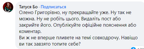 "Елена Григорьевна, ну, прекращайте уже. Ну, так нельзя. Ну, не делайте этого. Удалите пост или закройте его. Опубликуйте официальное объяснение или комментарий. Вы же не первая плывете на теме совкодроча. Зачем вы так упорно топите себя?"
