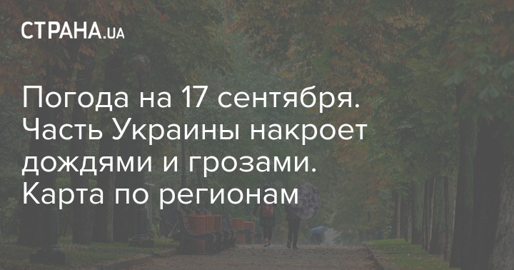 В Киеве и области в пятницу, 17 сентября, ночью местами, а днем повсюду - дождь, гроза. Ветер преимущественно юго-восточный, 7-12 м / сек. Температура воздуха ночью +9-11, днем +18-20 градусов.
