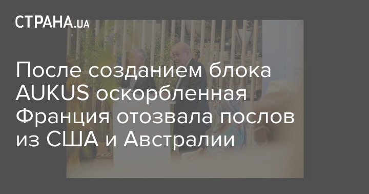 В связи с созданием Австралией, США и Великобританией нового военного блока AUKUS Франция отзывает из первых двух названных стран послов для консультаций. В частности, Париж не устраивает выход Канберры из соглашения по подлодкам на 56 миллиардов евро с французской компанией Naval Group.