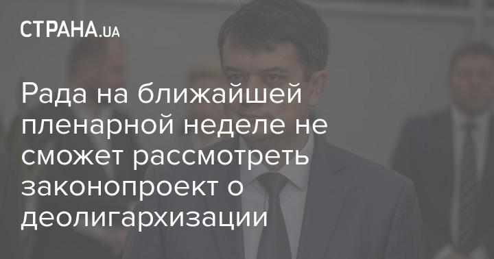 Верховная Рада не сможет рассмотреть принятый в первом чтении законопроект о деолигархизации на ближайшей пленарной неделе.