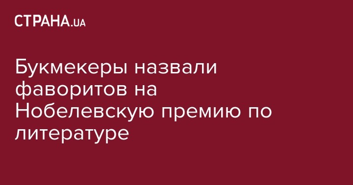 Онлайновая база данных Oddschecker, собирающая и обрабатывающая коэффициенты ставок на исход спортивных матчей, телевизионных шоу и президентских выборов, определила фаворитов на получение Нобелевской премии - 2016 по литературе.