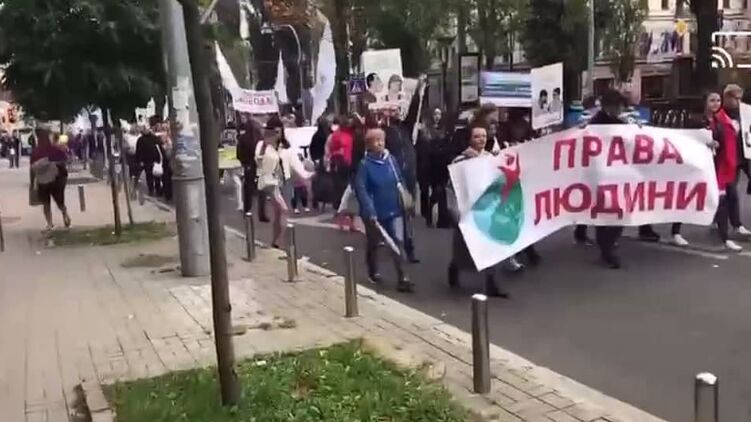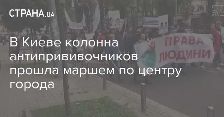 Колонна антипрививочников, которые сегодня, 18 сентября, организовали акцию протеста на Михайловской площади в Киеве, двинулась маршем по центру Киева.