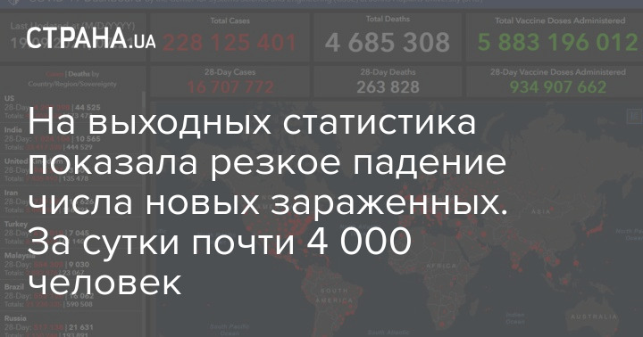 В целом на планете, по данным университета Джона Хопкинса на утро 19 сентября, число зараженных достигло отметки в 228 125 401 человек.
