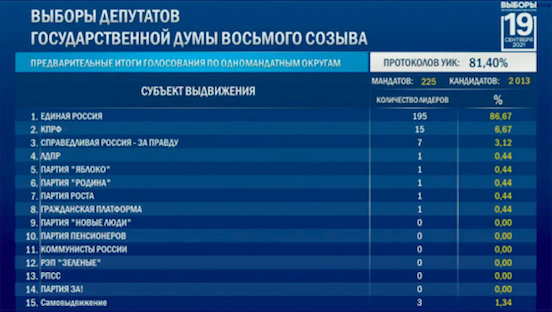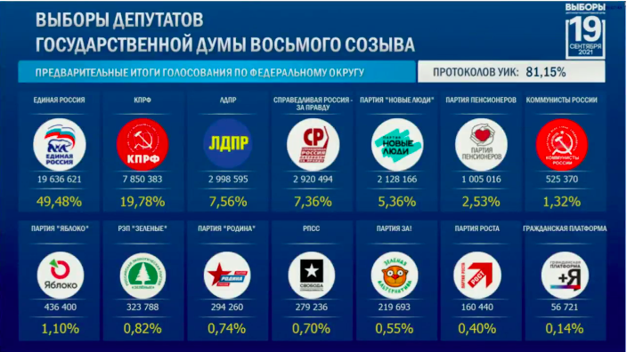 Предварительные итоги выборов в Госдуму 2021