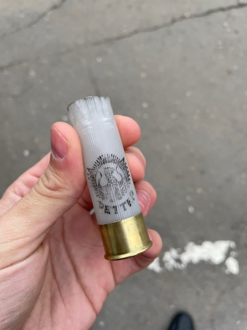 - "Вот этим стреляли в мою дверь", - один из студентов пермского вуза показал RT снимок гильзы из-под патрона, которым была заряжена винтовка нападавшего.