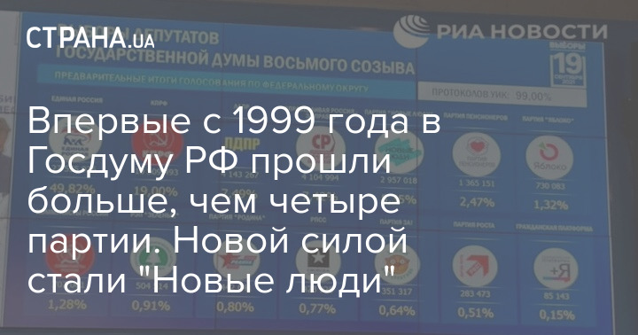 Впервые с 1999 года в Госдуму РФ прошли больше, чем четыре партии. Новой силой стали "Новые люди"
