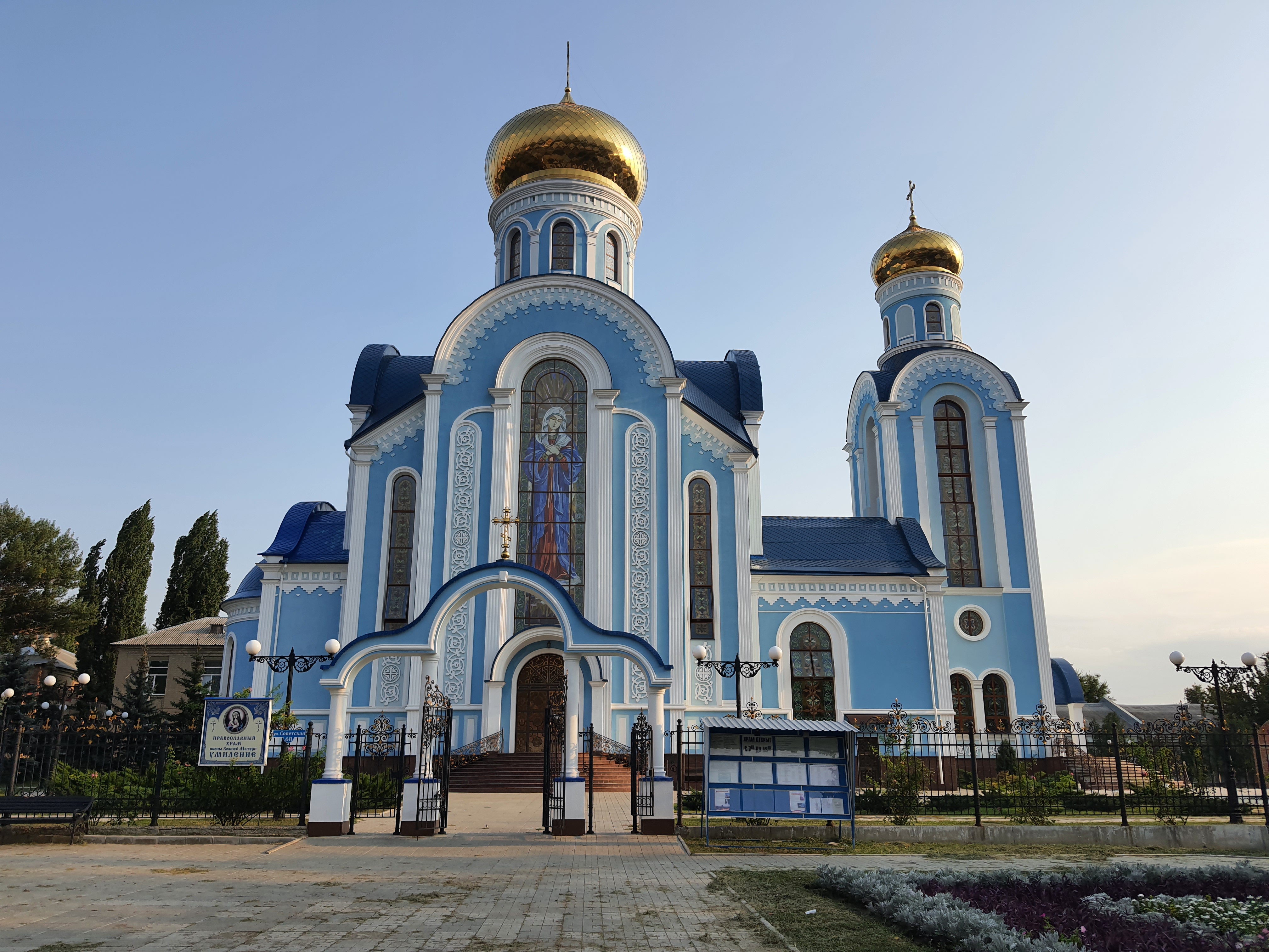 Некоторые объекты, которые были сильно повреждены в ходе обстрелов, сейчас полностью восстановлены. Например, храм Умиления в центре Луганска. Во время войны на его территории падали снаряды, от чего одна из построек сгорела, фасад и витражное оформление было повреждено. Сам храм на тот момент едва успел отметить двухлетие. Сейчас он полностью восстановлен.