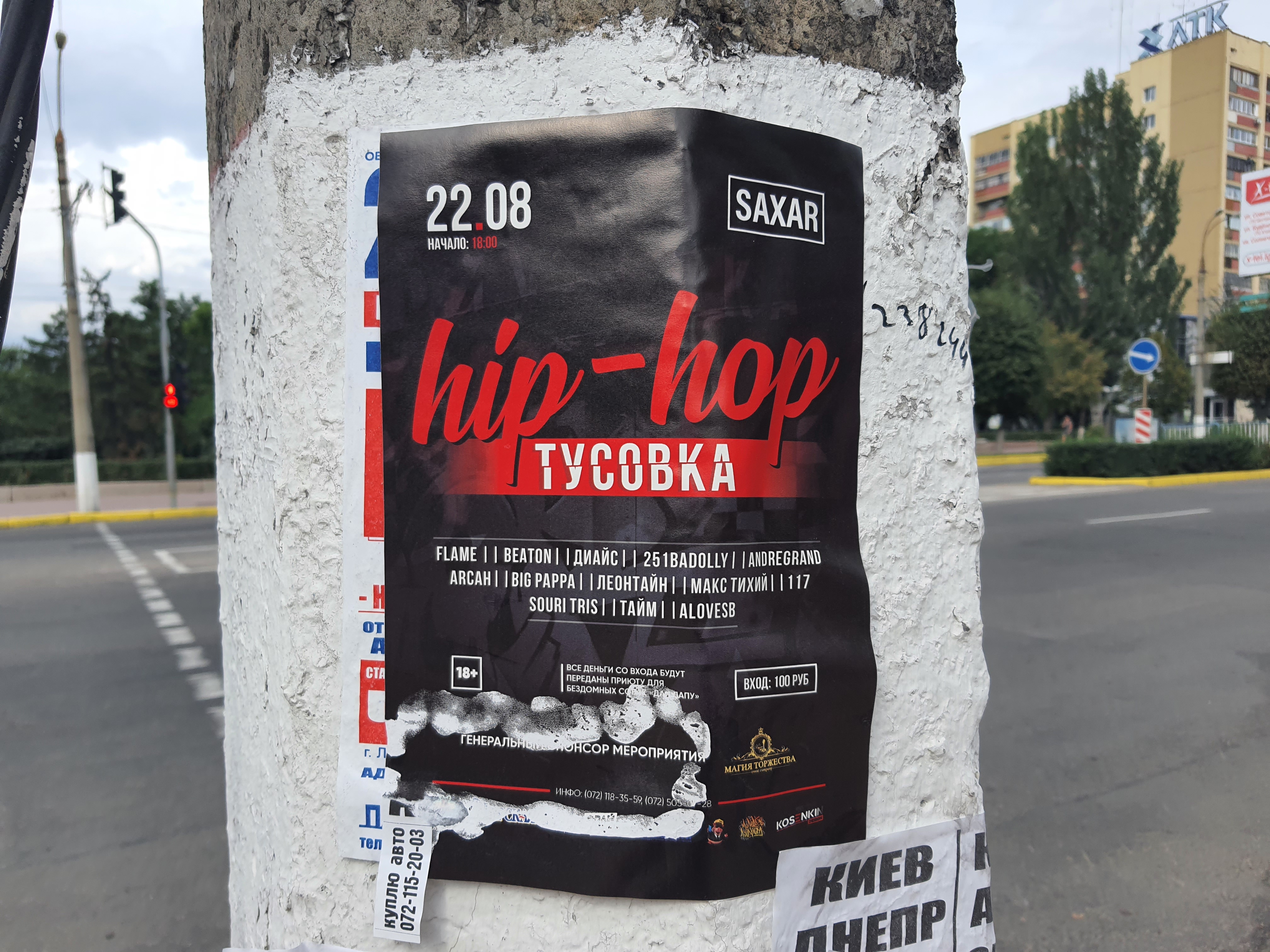 По объявлениям на столбах можно разузнать о жизни местной молодежи. Например, мне попалось уже старое объявление о реп-концерте. Средства, собранные с мероприятия должны были пойти на приют для бездомных собак.