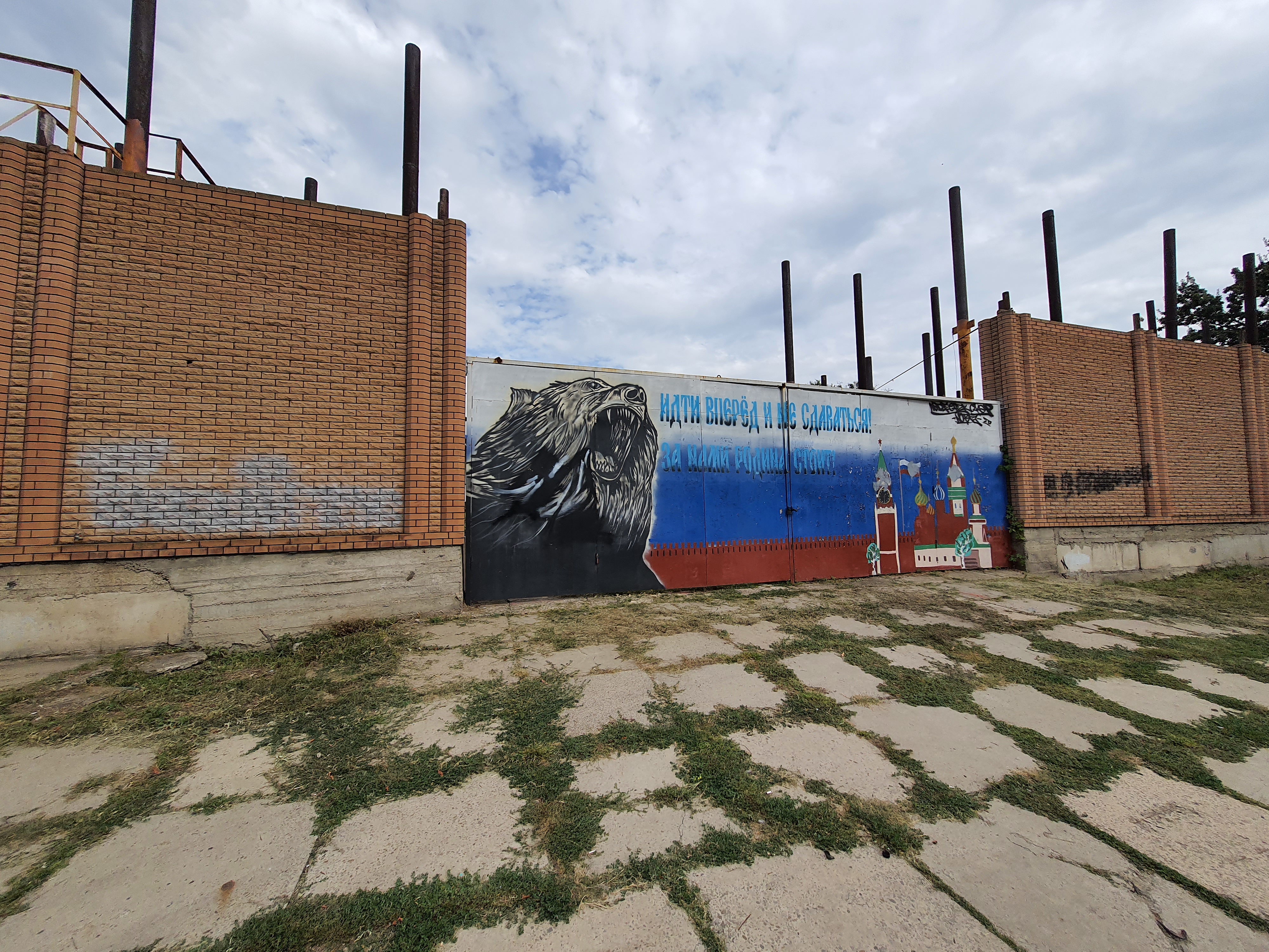В центре граффити с "русским медведем". Рядом тщательно замазанная надпись.