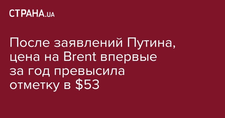 Котировки нефти марки Brent в ходе торгов в понедельник превысили отметку в $53 за баррель на декабрьскую нефть,  это произошло впервые за год, с первой половины октября 2015 года, сообщает "Интерфакс- Украина".