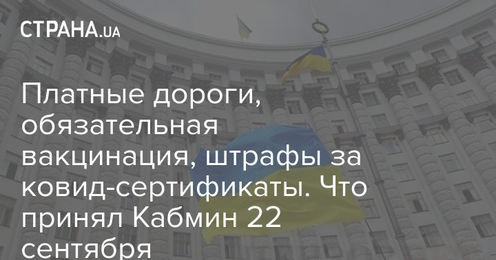 Платные дороги, обязательная вакцинация, штрафы за ковид-сертификаты. Что принял Кабмин 22 сентября