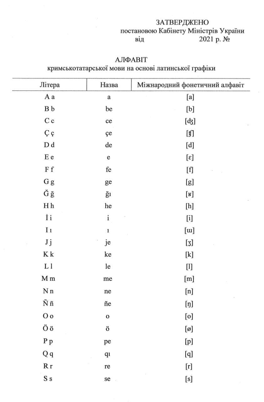 Крымско-татарский язык в Украине перевели на латиницу. Кабмин утвердил новый алфавит, который состоит из 31 буквы.