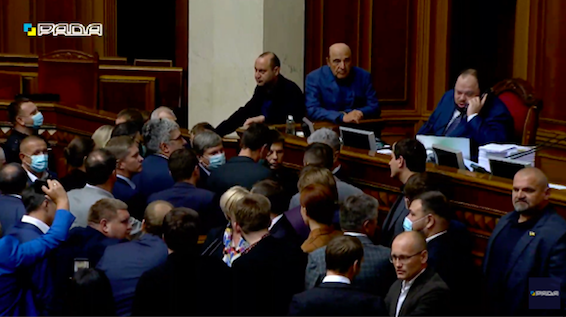 13:33 Нардепы от "ЕС" пришли к Стефанчуку, стоят рядом и кричат: "Ты - последний диктатор". А также: "Лу-ка-шен-ко". Стефанчук ответил: "Он не придет, он в другой стране, это вам к Шевченко".