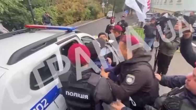 Доротича силой затолкали в патрульный автомобиль и увезли в Печерское управление полиции, как передает Телеграм -  канал "Политика "Страны".