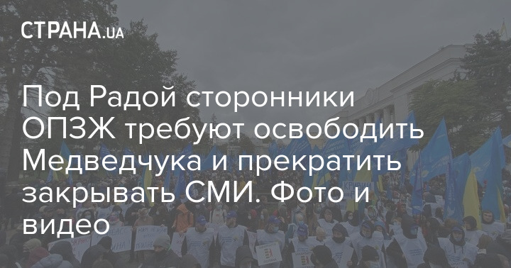 Под Радой сторонники ОПЗЖ требуют освободить Медведчука и прекратить закрывать СМИ. Фото и видео