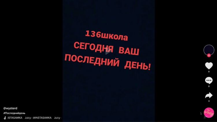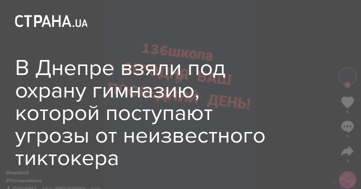 В Днепре в здании гимназии №136 дежурит полиция после того, как в соцсетях были опубликованы угрозы расправы с учениками и преподавателями. В частности, в одном из аккаунтов сети TikTok появился ролик, в котором неизвестный с аккаунта @wyasder предупреждает о пришествии последнего дня 136-й школы.