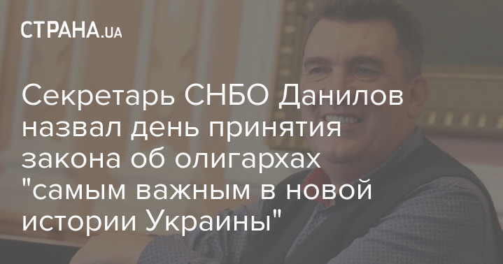 Секретарь Совбеза Украины Алексей Данилов в связи с принятием Радой закона об олигархах объявил сегодняшний день "самым важным в новой истории Украины".