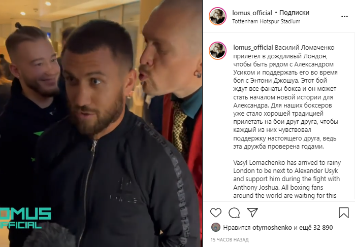 Позже, когда Василий Ломаченко давал журналистам интервью, Усик прошел мимо и неожиданно поцеловал его в ухо. Видео можно увидеть по ссылке