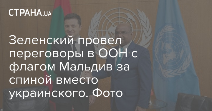Зеленский провел переговоры в ООН с флагом Мальдив за спиной вместо украинского. Фото