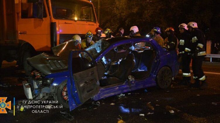В Днепре ночью мусоровоз столкнулся с легковушкой. Фото: ГСЧС в Днепропетровской области