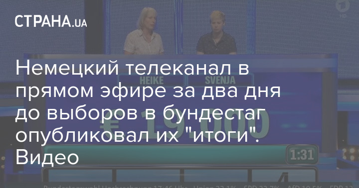 Немецкий телеканал в прямом эфире по ошибке опубликовал "итоги" выборов в бундестаг. Фото: Скриншот из видео
