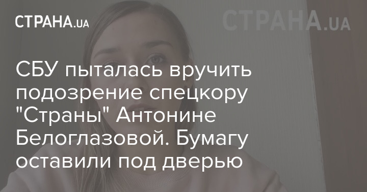 Со вчерашнего вечера неизвестные люди, назвавшиеся сотрудниками СБУ, пытались вручить подозрение спецкору "Страны" Антонине Белоглазовой.