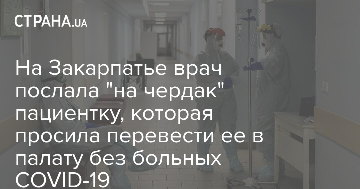 На Закарпатье врач инфекционного отделения Мукачевской больницы послала пациентку "на чердак" - женщина просила перевести ее в палату без больных коронавирусной инфекцией COVID-19. Пациентка объяснила, что не заражена коронавирусом, а подхватить его не хочет.