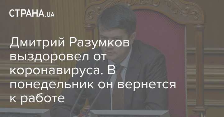 Дмитрий Разумков выздоровел от коронавируса. В понедельник он вернется к работе
