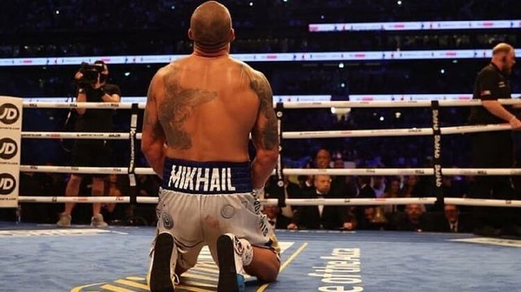 Александр Усик стал на колени после победы над Джошуа. Фото: instagram.com/lomus_official