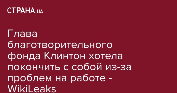 Глава благотворительного фонда Клинтон хотела покончить с собой из-за проблем на работе - WikiLeaks