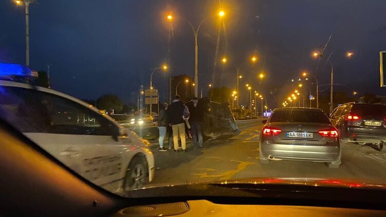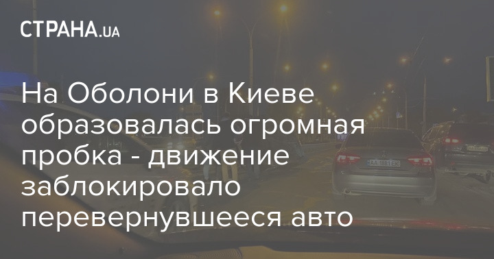 На Оболони в Киеве образовалась огромная пробка - движение заблокировало перевернувшееся авто