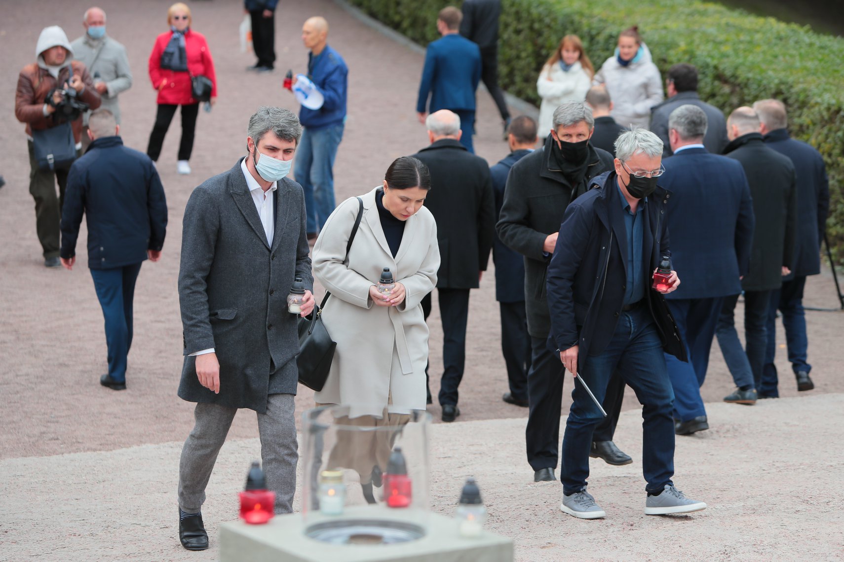 Памятные мероприятия начались 29 сентября в 10:00 с символического зажжения огня у памятника погибшим. Огонь будет гореть в течение двух дней. На зажжении побывали, среди прочих, министр культуры Александр Ткаченко и глава Института нацпамяти Антон Дробович.
