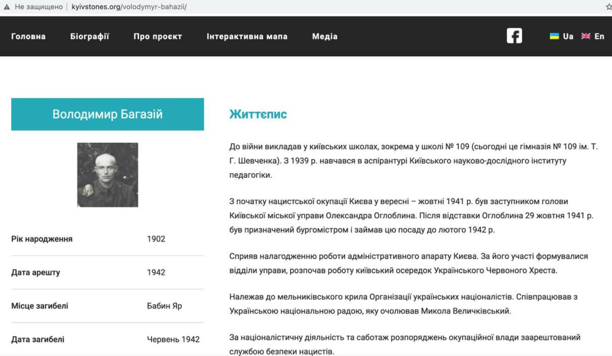 В Бабьем Яру в 1942 году было убито несколько сот членов ОУН, среди которых - бургомистр Киева при нацистах Владимир Багазий. В этом статусе он, к слову, лично присутствовал на расстрелах в первые, самые кошмарные дни массовых убийств.