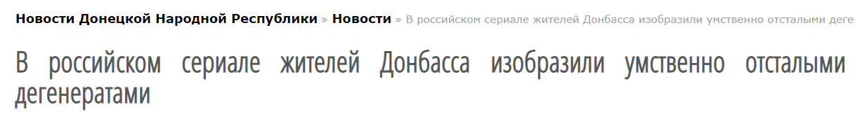 Местный новостной ресурс "Новости Донецкой республики" пишет: "В российском сериале жителей Донбасса изобразили умственно отсталыми дегенератами".