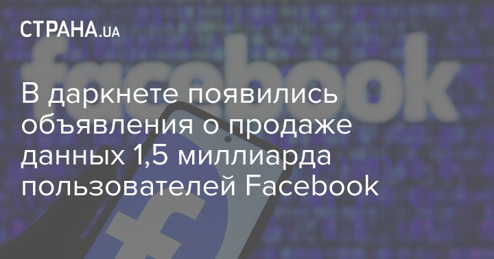 В даркнете появились объявления о продаже данных 1,5 миллиарда пользователей Facebook