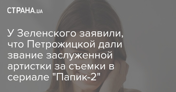 Офис президента Украины заявил, что Зеленский присвоил актрисе Дарье Петрожицкой звание Заслуженной артистки Украины за участие в съемках снятого "Студией Квартал 95" комедийного сериала "Папик-2", который показывают на российском телеканале СТС.