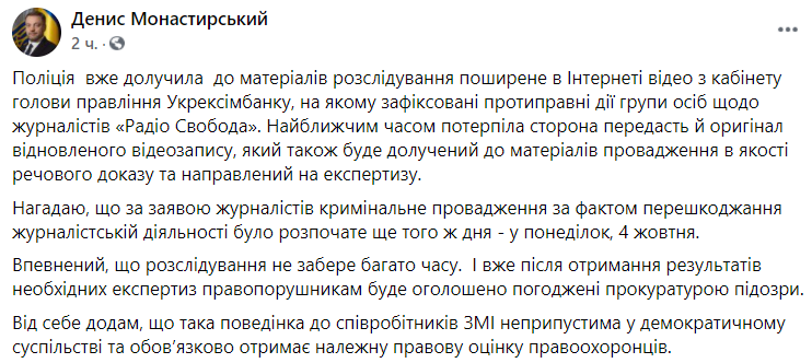 Далее историю через сутки решает прокомментировать глава МВД Денис Монастарский, который обещает, что расследование пройдет быстро.