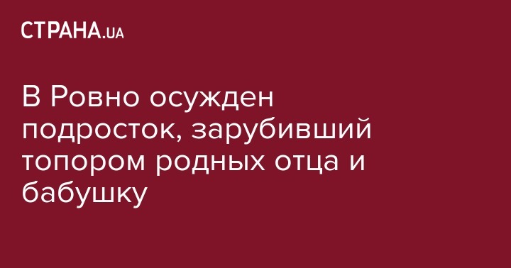 Несовершеннолетнего, 17-летнего парня приговорили к 15 годам лишения свободы за жестокое убийство топором родного отца и бабушки, указано в официальном сообщении пресс-службы прокуратуры Ровенской области.