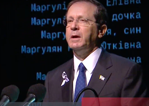 Среди прочих, Герцог поблагодарил российского бизнесмена Михаила Фридмана, который дал деньги на мемориал в Бабьем Яру (против чего выступали националисты).