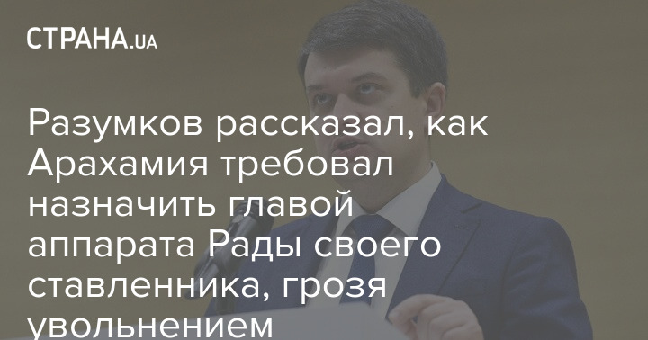 Глава фракции "Слуга народа" Давид Арахамия требовал от спикера парламента Дмитрия Разумкова назначить на пост главы аппарата Верховной Рады своего ставленника, угрожая спикеру увольнением с его поста.