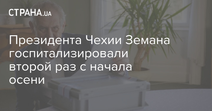 77-летнего президента Чехии Милоша Земана, который страдает от обезвоживания и переутомления, госпитализировали в Центральный военный госпиталь в Праге. Это произошло уже во второй раз с середины сентября.
