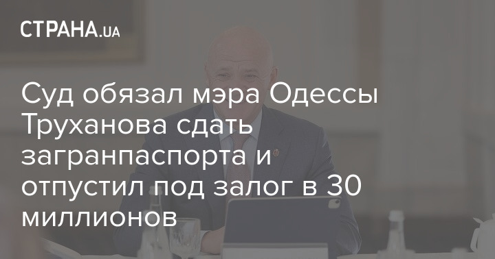 Следственная судья Высшего антикоррупционного суда Оксана Олейник отпустила мэра Одессы Геннадия Труханова, которого подозревают в незаконной раздаче земли, под 30 млн гривен залога с обязательствами. В частности, суд обязал одесского градоначальника сдать загранпаспорта.