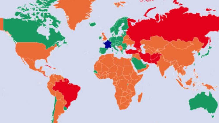 Франция внесла Украину в "оранжевую" зону. Скриншот: gouvernement.fr