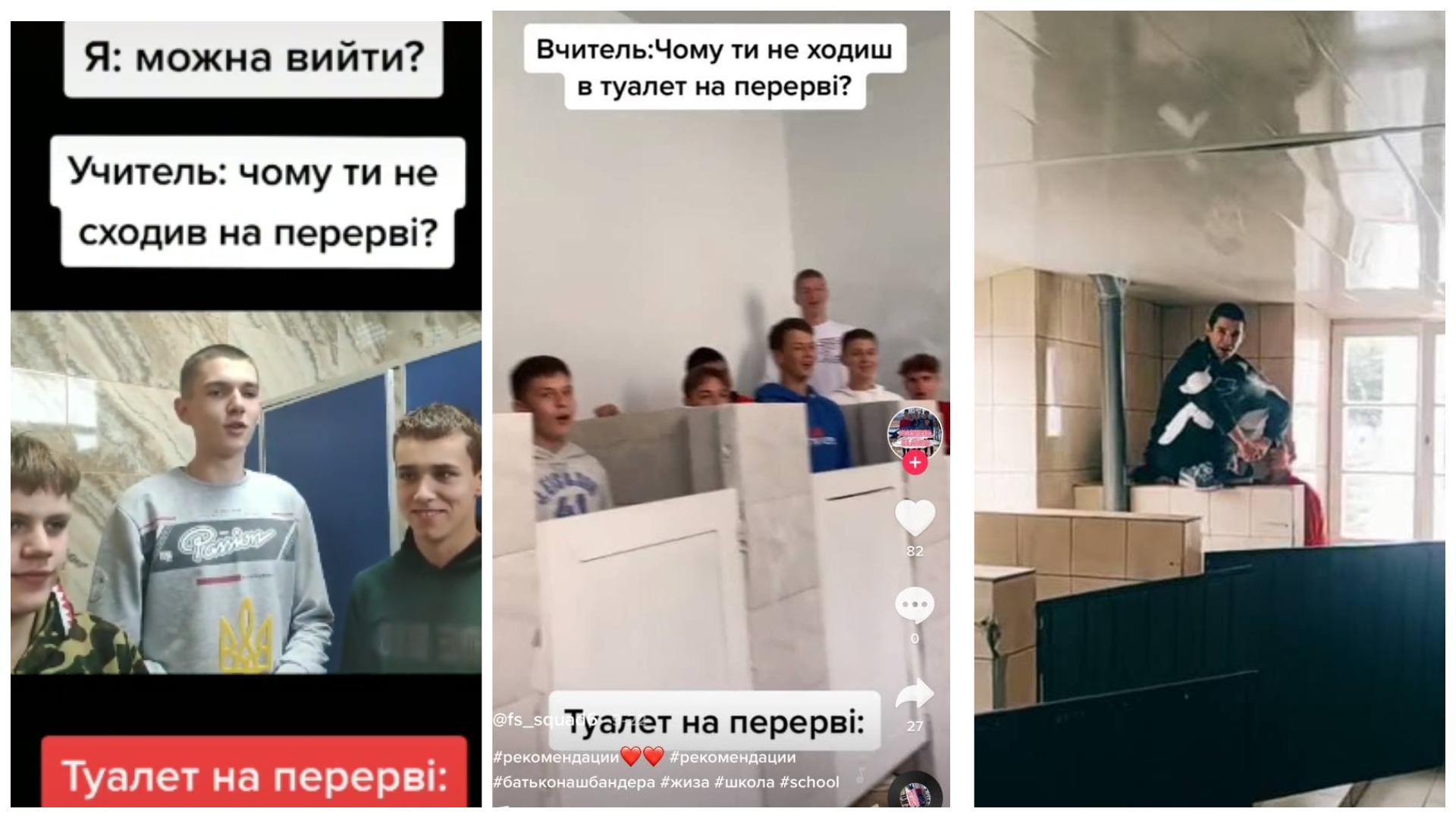 Зачем украинские тиктокеры начали петь в школьных туалетах песню праворадикалов. Коллаж