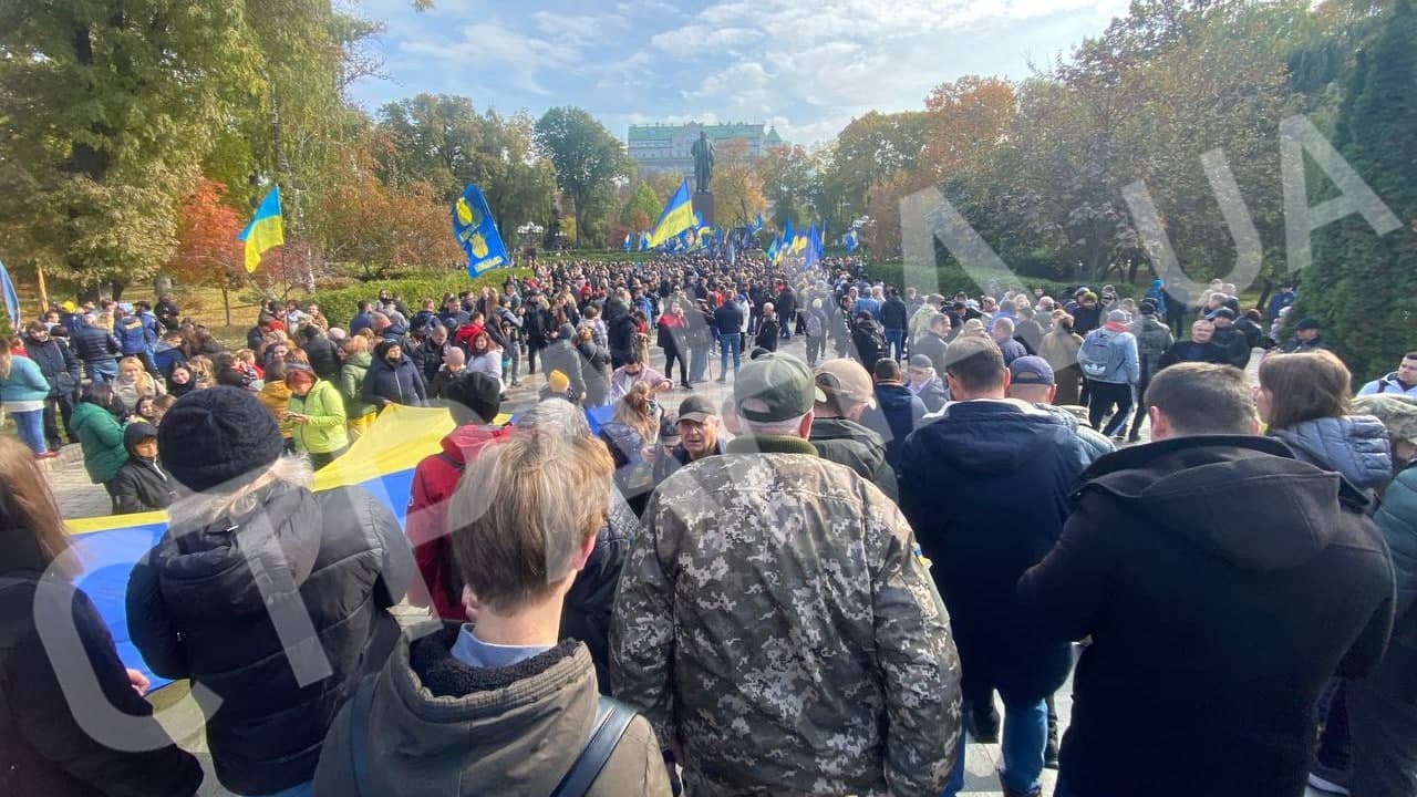 Сейчас в парке Шевченко около тысячи человек. Они держат в руках флаги Украины, а также Нацкорпуса и Свободы.