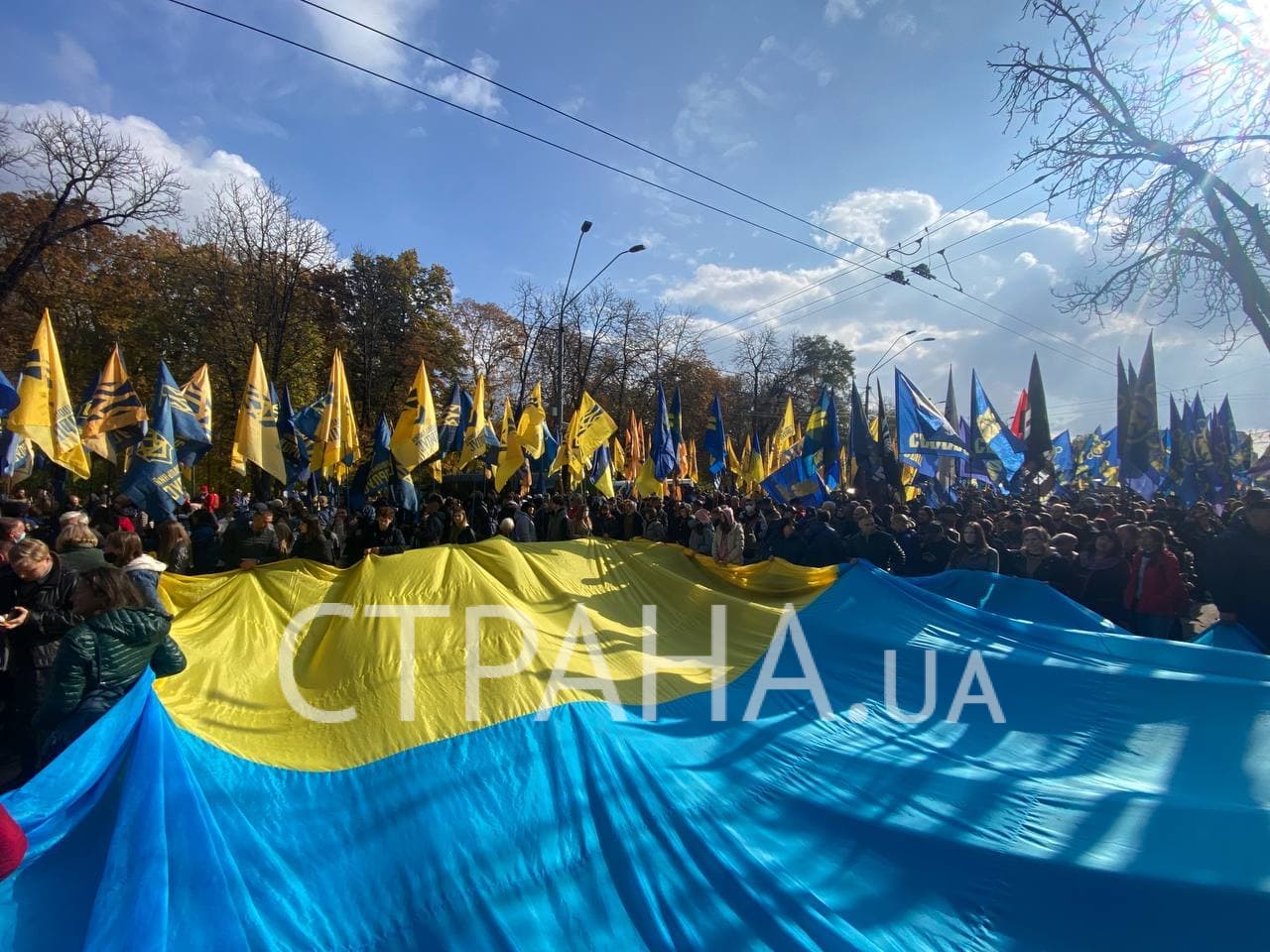 Сторонники "Свободы" идут к мемориалу Героев Небесной Сотни, а представители "Нацкорпуса" собираются направиться к Офису Президента.