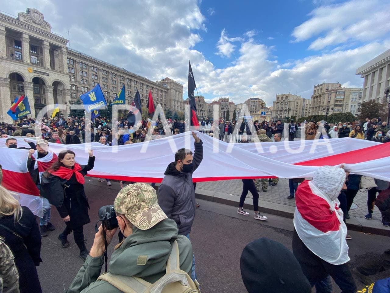 14:54 Колонна участников марша растянулся где-то на один километр. Начало колонны на Майдане Независимости, а конец - возле Бессарабского рынка.
