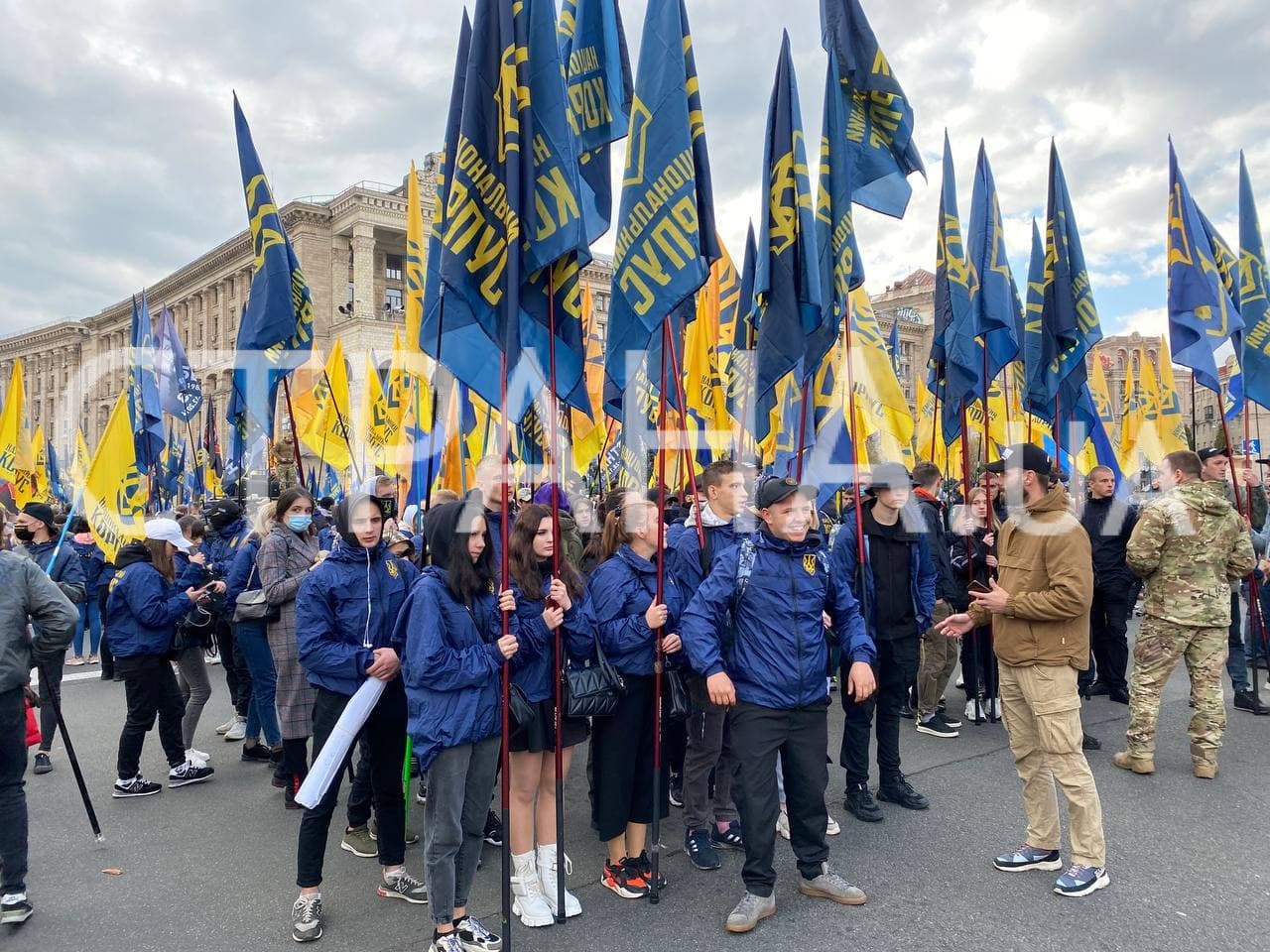 13:13 Националисты уже построились на улице Владимирской, но шествие пока не начинается. Ведущий призывает "не покидать строй" и подождать еще 20-30 минут.