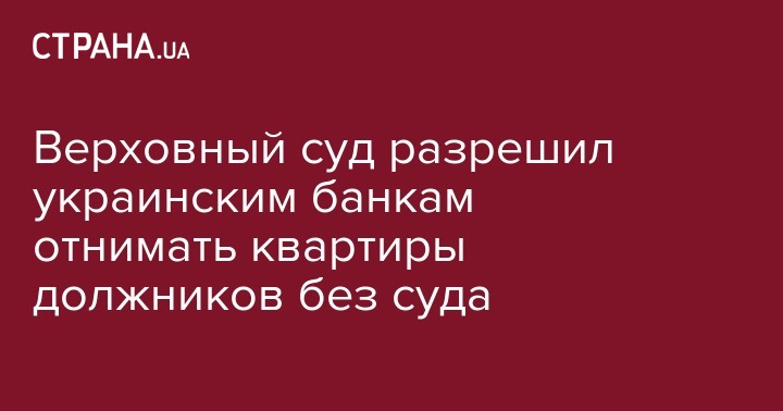 Украинским банкам стало проще отнять у должника квартиру - для этого больше не нужно идти в суд, передает UBR, со ссылкой на постановление Верховного суда, вынесенному по иску банка "Финансы и кредит".